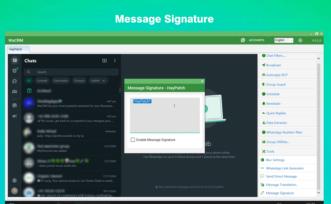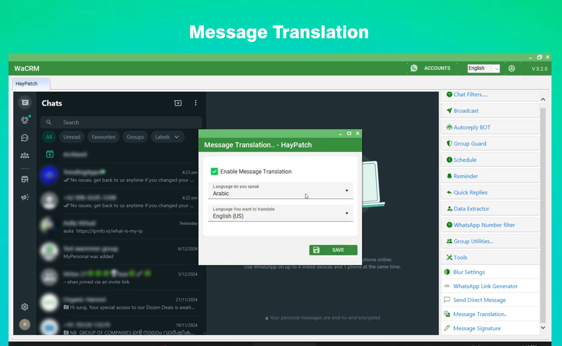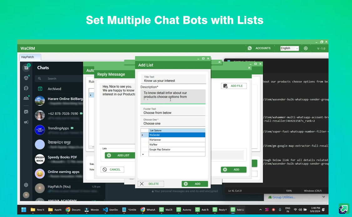 WaCRM be your most powerful assistant for your Business marketing and sales via WhatsApp Web.